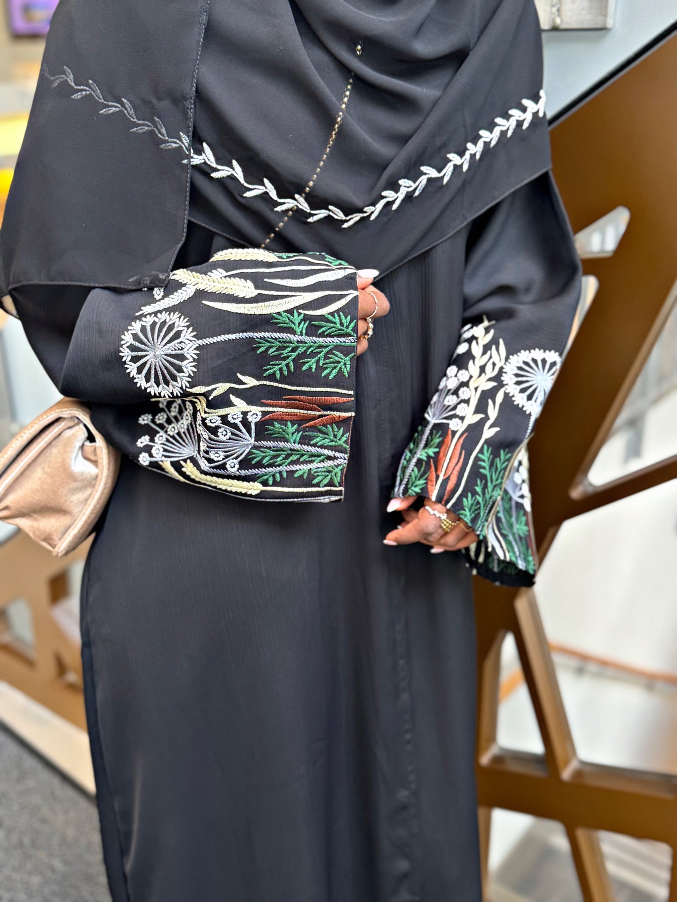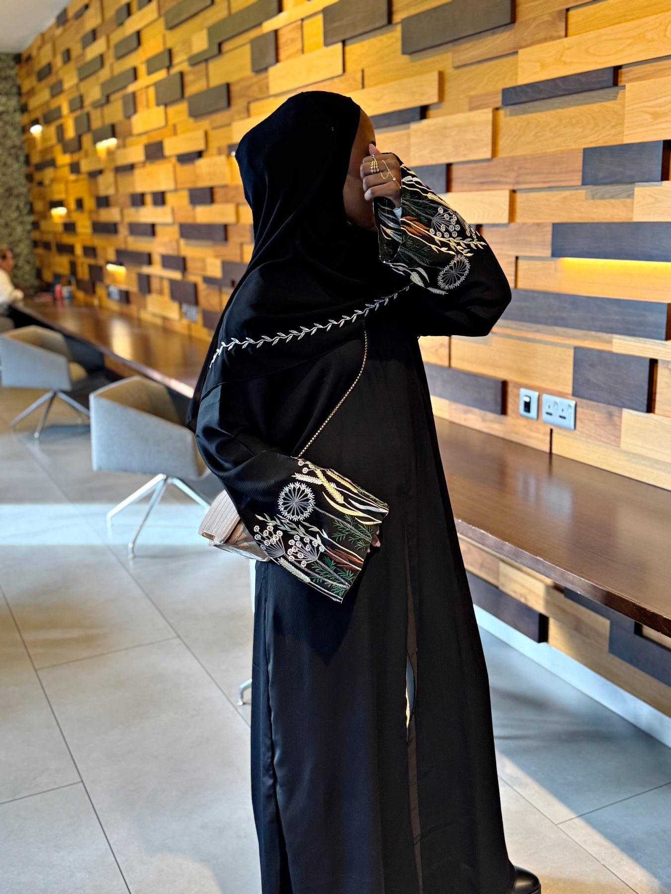This embroidered abaya comes with a matching embroidered hijab featuring the same beautiful flower design, completing the look with coordinated elegance. Ideal for women who embrace modest fashion, this abaya is a versatile and stylish option for a variety of occasions.
